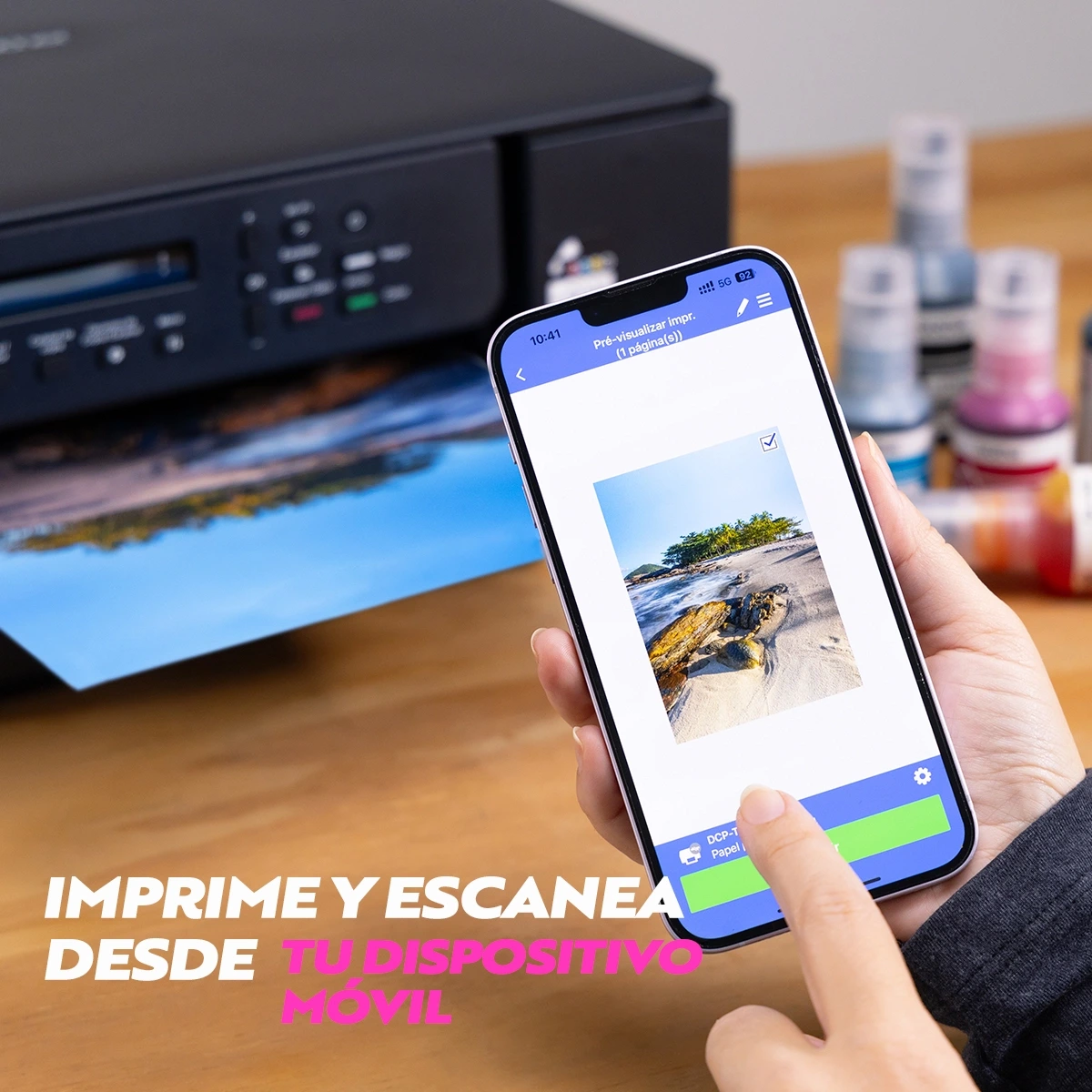 Las innovadoras botellas antiderrames te permiten llenar el tanque en segundos.Impresión y escaneado móvil